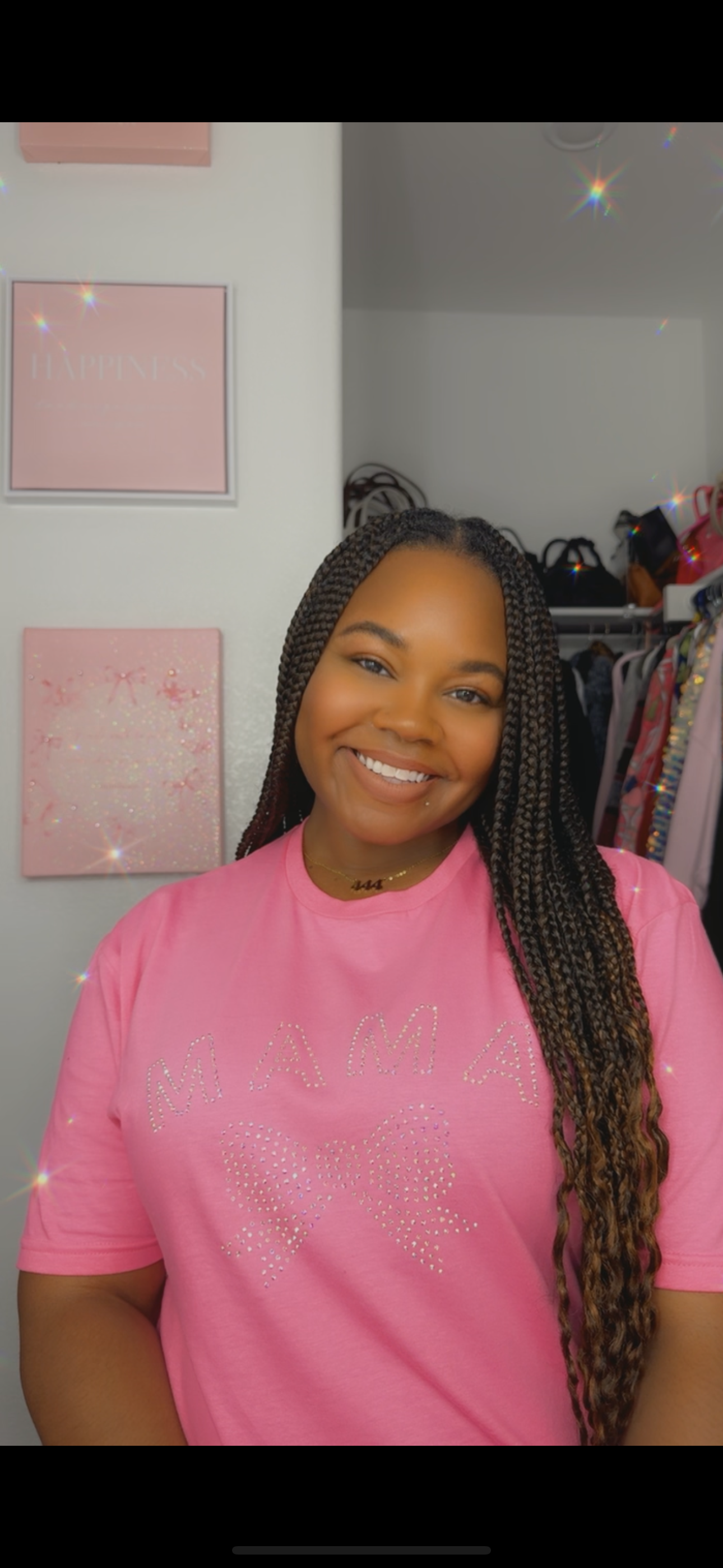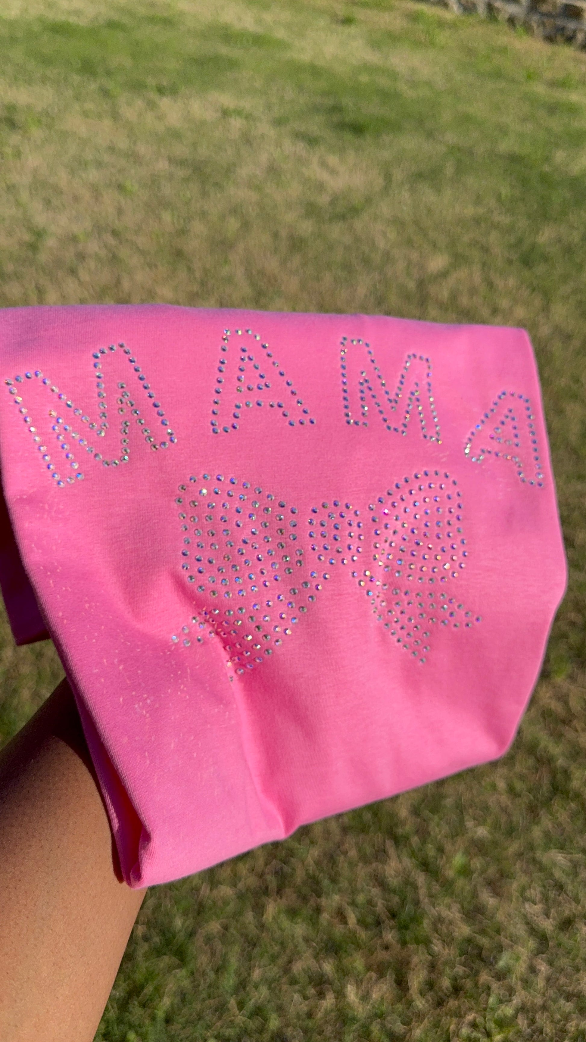 Shimmer and shine with our MAMA Rhinestone T-Shirt! This stylish shirt features a dazzling rhinestone design and bow, perfect for adding a touch of glamour to any outfit. Show off your love for motherhood in a bold and eye-catching way.